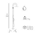 Arkema Funny Yin T145 er en moderne udendørs bruser med både koldt og varmt vand samt en fleksibel håndbruser. Den slanke konstruktion i UV-resistent HD-polyethylen gør den både holdbar og stilren – perfekt til terrasser, poolområder og sommerhuse.
