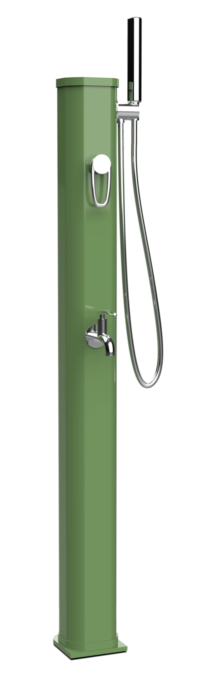 Den har en 20 liters vandtank, som opvarmes udelukkende af solens energi, samt både fodbruser og en håndbruser med fleksibel slange – perfekt til en hurtig afskylning af kroppen uden at få håret vådt.